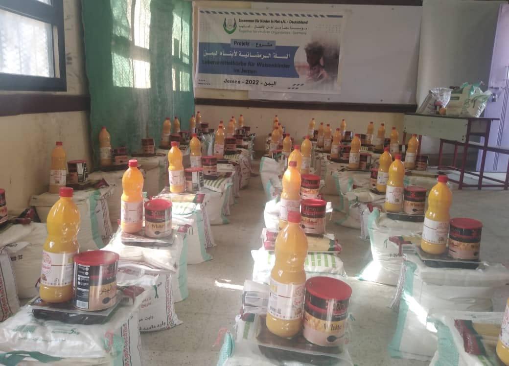 | Lebensmittel – Part 2: Lebensmittelkörben für Waisenkinder im Jemen | Im April 2022 wurden 335 Lebensmittelkörbe an Familien von Waisenkindern im Jemen verteilt.Der Lebensmittelkorb enthält 25 kg Mehl, 5 kg Reis, 5 kg Zucker, 3 Liter Öl, 1 kg Datteln, Spaghetti, Dosen Bohnen oder Suppe/Pudding. | |