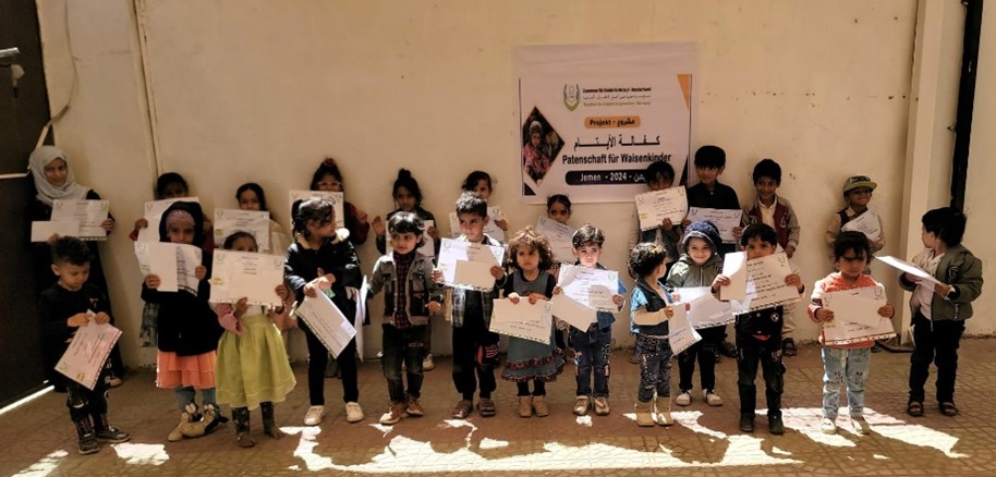 | Förderung, Schutz und Betreuung von Kindern | Patenschaften für Waisenkinder im Jemen | Im Jahr 2024 wurden im Jemen 635 Waisenkinder gefördert. Im ersten Teil wurden mit Unterstützung der Hasene International Organization 40 Waisenkinder gefördert. Im zweiten Teil Spenden von Menschen zur Patenschaft für 595 Waisenkinder. Dieses Projekt wurde in mehreren Gouvernoraten der Republik Jemen umgesetzt, darunter Sana’a, Taiz, Al-Hudaida, Ibb und Dhamar. Diese finanzielle Unterstützung für die Familien verwaister Kinder soll das Leid lindern und die Lebensgrundlagen sichern, insbesondere nach dem Verlust des Familienoberhauptes. Im Schatten von Kriegen und Konflikten steigt der Anteil der Waisenkinder und das Leben wird schwieriger. |