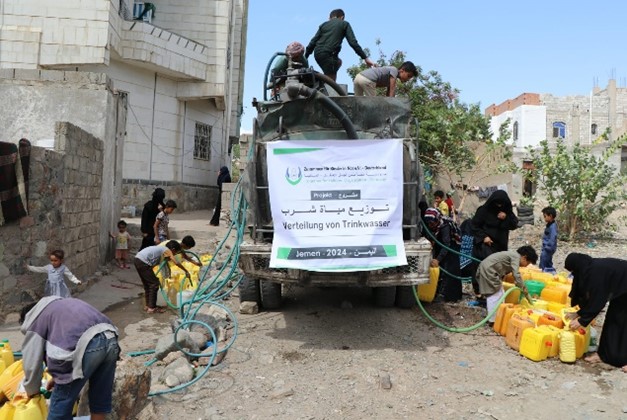 Dürrebekämpfung durch Wasserprojekte / Verteilung von Trinkwasser im Jemen | Im März/April 2024 wurde im Gouvernement Taiz in der Republik Jemen Trinkwasser verteilt. Das Projekt umfasste 17 Tagen lang mehrere Gebiete im Gouvernement Taiz. Eiswasser wurde auch in heißen Gebieten im Gouvernement Al-Hudaydah im Jemen verteilt. Viele arme und bedürftige Familien profitierten vom Wasserprojekt |