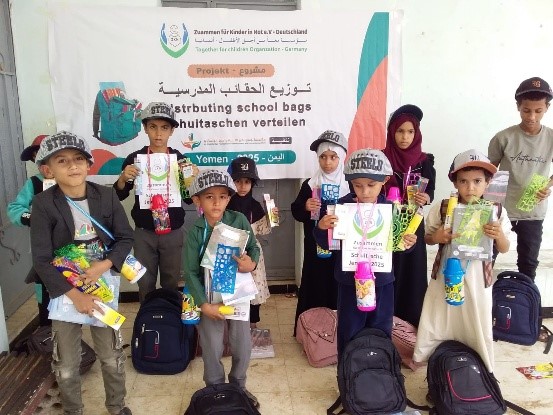 Im Juli / August 2023 wurde das Schultasche &-materialsprojekt in den Gouvernements Taiz und Ibb im Jemen umgesetzt. Das Projekt beinhaltet die Verteilung einer Tasche inkl. Schulmaterial (Hefte, Stifte, Spitzer, Radiergummi, Lineal und eine Trinkflasche) für Schulkinder. 275 Waisen und bedürftige Kinder profitierten von dem Projekt.