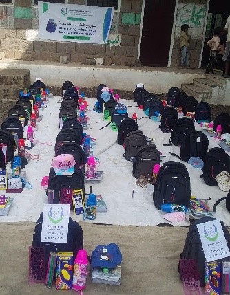 In August 2025, the school bag and supplies project was implemented in the Taiz and Ibb Governorates and in rural areas of Yemen. The project involved distributing a school bag containing school supplies (two packs of notebooks, a box of pencils, a pack of ballpoint pens, a box of colored pencils, two scrapers, two erasers, two rulers, a water bottle, and a cap) to schoolchildren. The project benefited 485 orphans and underprivileged children.