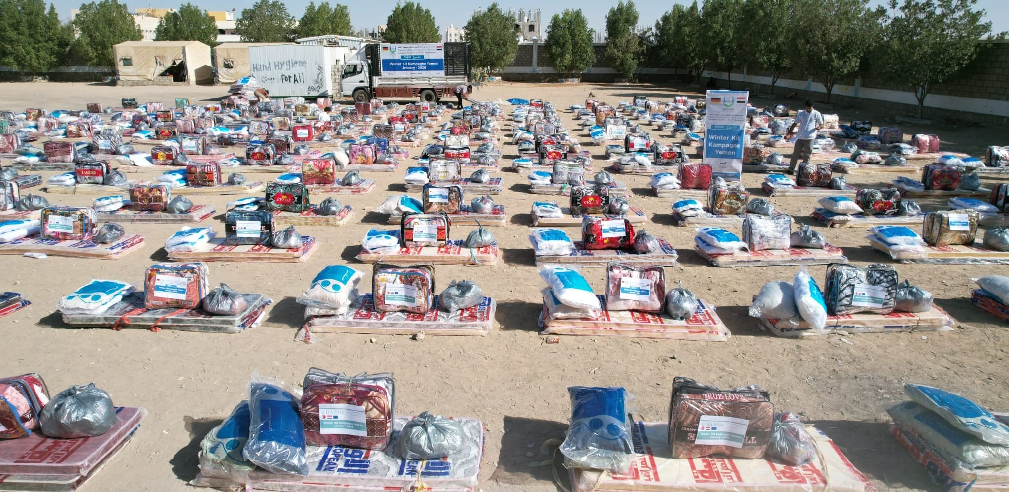 At the beginning of January 2026, winter aid was distributed in Marib Governorate, Yemen. The winter package included two mattresses, two wool blankets, two pillows, and five sets of pajamas/winter clothing. A total of 250 vulnerable and displaced families benefited from the project.