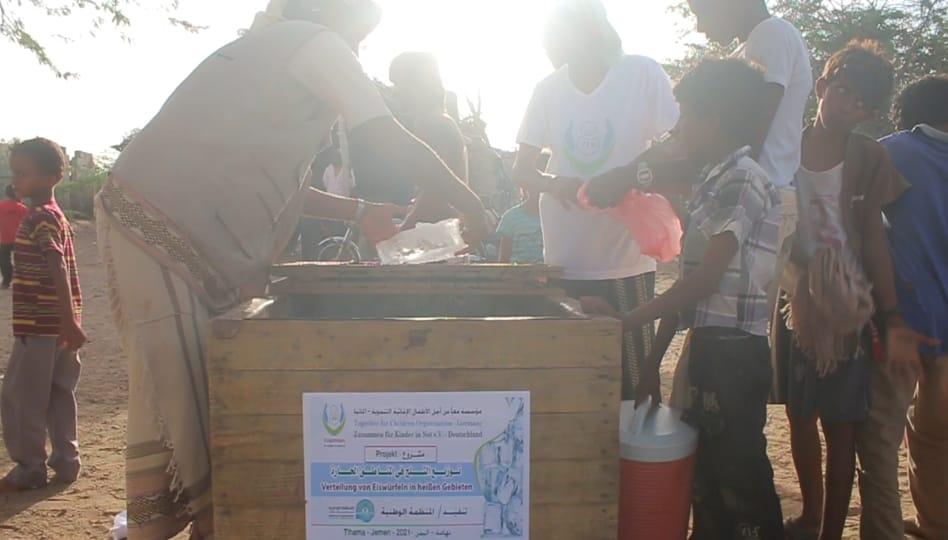| Dürrebekämpfung durch Trinkenwasserverteilung und Eisblocken in heißen Regionen im Jemen | In den Monaten April und Mai (Monat Ramadan) 2021 wurde Trinkenwasser an Bedürftige im Gouvernement Taiz im Jemen verteilt und auch Eisblocken wurden in heißen Regionen in Tihama im Jemen verteilt. Arme und bedürftige Familien profitierten von dem Projekt. | |