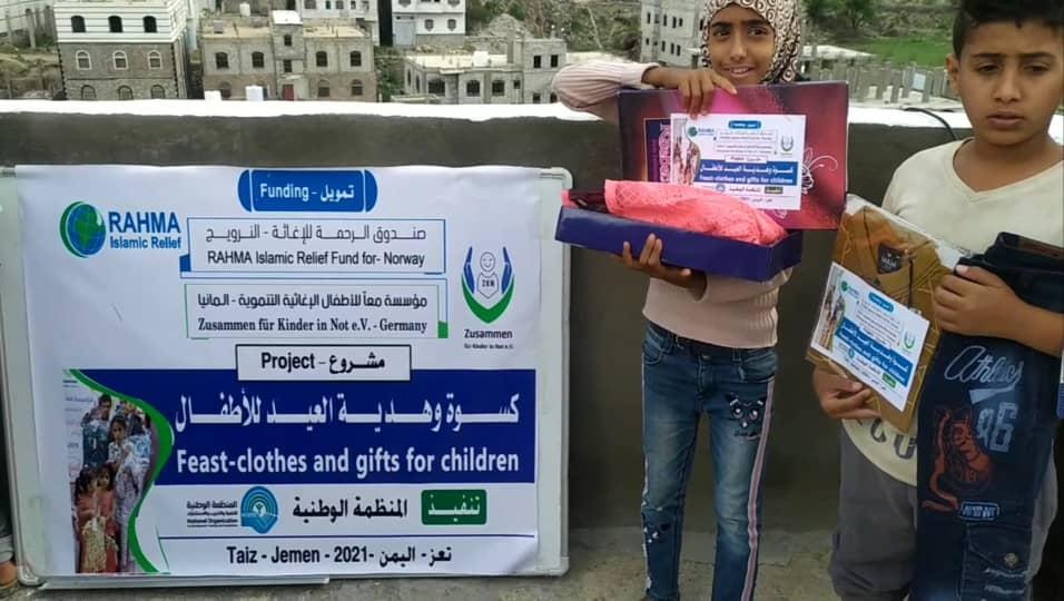| Kleidung für bedürftige Kinder im Jemen | Im Mai 2021 wurde Kleidung an Waisen und bedürftige Kinder während des Zuckerfests im Jemen verteilt. Das Projekt wurde in den Gouvernements Taiz und Al-Hudaida im Jemen durchgeführt, 250 Kinder profitierten von dem Projekt. | |