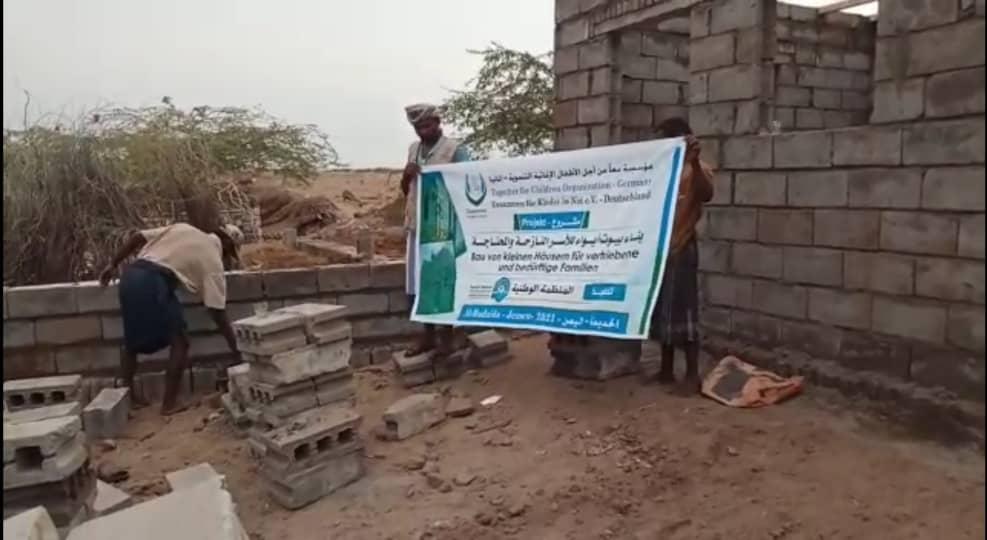| Hilfe für Flüchtlinge, Vertriebene und Kriegsopfer | Bau von kleinen Häusern für vertriebene und bedürftige Familien im Jemen | Projekt 2021 / 2022: Dieses Projekt zielt darauf ab, 15 kleine Häuser zu bauen. Jedes Haus besteht aus einem Zimmer, einem Badezimmer, einer Küche und einem Korridor. Das Projekt kam mehreren vertriebenen und bedürftigen Familien in der Stadt Al-Hudaida im Jemen zugute. |