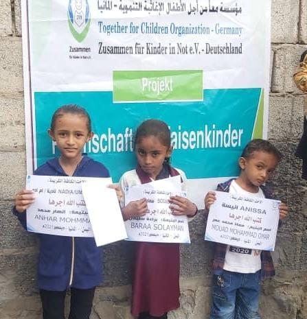 | Förderung, Schutz und Betreuung von Kindern | Patenschaften für Waisenkinder im Jemen | Im Jahr 2021 wurden im Jemen 104 Waisenkinder gefördert. Im ersten Teil wurden mit Unterstützung der Hasene International Organization 42 Waisenkinder gefördert. Im zweiten Teil Spenden von Menschen zur Patenschaft für 62 Waisenkinder. Dieses Projekt wurde in mehreren Gouvernements der Republik Jemen umgesetzt. Diese finanzielle Unterstützung für die Familien verwaister Kinder soll das Leid lindern und die Lebensgrundlagen sichern, insbesondere nach dem Verlust des Familienoberhauptes. Im Schatten von Kriegen und Konflikten steigt der Anteil der Waisenkinder und das Leben wird schwieriger. |