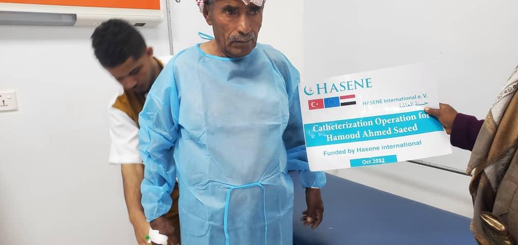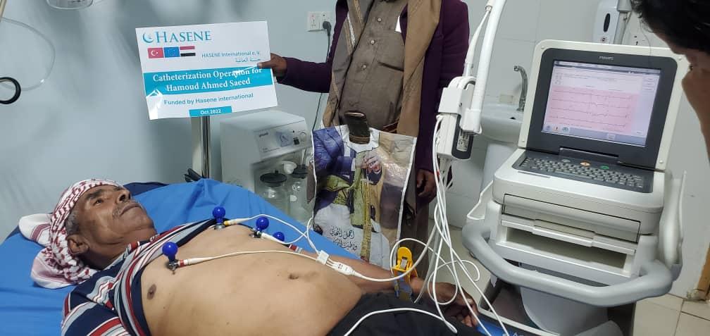| Gesundheitsförderung | Hilfe / Unterstützung bezüglich einer Katheter Operation für einen Patienten im Jemen | Im Rahmen ihres Zakat-Programms für das Jahr 2022 unterstützte die Hasene International Organization einen kranken Mann im Jemen namens Herr Hamoud Ahmed Saed. Diese Unterstützung sind die Kosten für die Durchführung einer Katheterisierungsoperation für den Patienten. Dieser Patient ist arm, hat eine Familie und leidet schon lange an der Krankheit. Seine Lebensbedingungen sind schwierig und er kann die Kosten der Operation nicht bezahlen. |