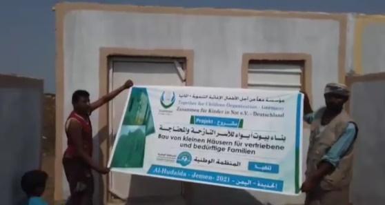 | Hilfe für Flüchtlinge, Vertriebene und Kriegsopfer | Bau von kleinen Häusern für vertriebene und bedürftige Familien im Jemen | Projekt 2021 / 2022: Dieses Projekt zielt darauf ab, 15 kleine Häuser zu bauen. Jedes Haus besteht aus einem Zimmer, einem Badezimmer, einer Küche und einem Korridor. Das Projekt kam mehreren vertriebenen und bedürftigen Familien in der Stadt Al-Hudaida im Jemen zugute. |