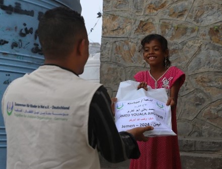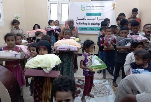 | Hilfe für Flüchtlinge, Vertriebene und Kriegsopfer | Fest-Kleidung & Fest-Feier für Bedürftige und Waisenkinder im Jemen | Im Rahmen des Festfreude-Projekts wurde im April 2024 Festkleidung an Kinder in den Gouvernements Sana’a, Taiz und Al-Hudaydah im Jemen verteilt. Außerdem wurde im Gouvernement Taiz eine Fest-Feier für Kinder abgehalten. Auf dem Land im Gouvernement Taiz wurden Fest -Geschenke an Waisen und bedürftige Kinder verteilt. Darüber hinaus wurde für die Kinder ein Ausflug in den Vergnügungspark im Gouvernement