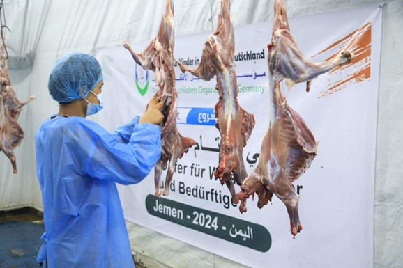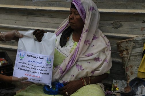 | Hilfe zur Bekämpfung von Armut und Hungersnot | Verteilung von Fleisch für bedürftige Familien im Jemen | Am Juni 2024 wurde Opferfleisch, 256 Lämmer / Schafe und 34 Rinder, in der Republik Jemen verteilt.