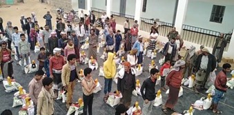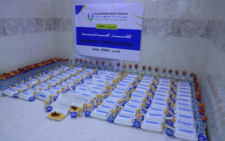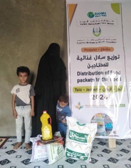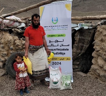 Im März/April 2024 und auch im Dezember 2024 wurden in der Republik Jemen 3320 Lebensmittelpakete umgesetzt. Jedes Lebensmittelpaket enthält 10–25 kg Mehl, 5–10 kg Reis, 5–10 kg Zucker, 1,5–2 Liter Öl, 1–2 kg Datteln, Nudeln und Bohnen. Das Projekt umfasste mehrere Gouvernements im Jemen, darunter Ma’rib, Al-Mahra, Taiz, Ibb, Dhamar, Al-Hudaydah und ländliche Gebiete. Das Projekt kam 3320 Familien von Vertriebenen, Waisen, Kranken und Bedürftigen zugute. | |