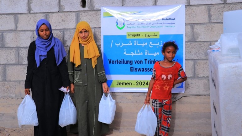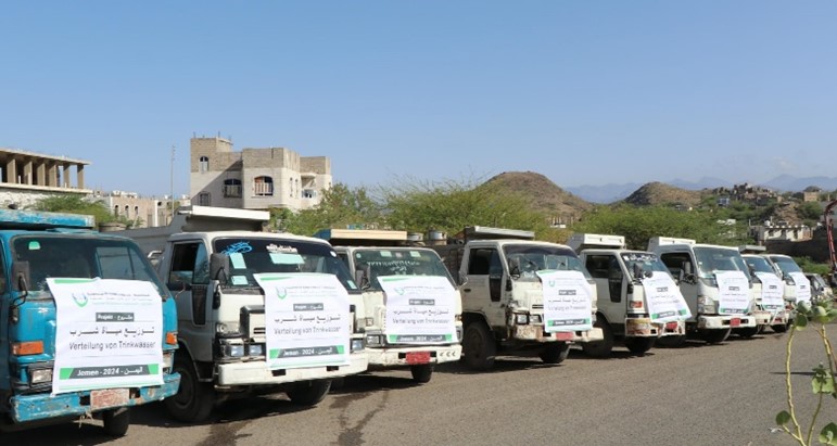Dürrebekämpfung durch Wasserprojekte / Verteilung von Trinkwasser im Jemen | Im März/April 2024 wurde im Gouvernement Taiz in der Republik Jemen Trinkwasser verteilt. Das Projekt umfasste 17 Tagen lang mehrere Gebiete im Gouvernement Taiz. Eiswasser wurde auch in heißen Gebieten im Gouvernement Al-Hudaydah im Jemen verteilt. Viele arme und bedürftige Familien profitierten vom Wasserprojekt |