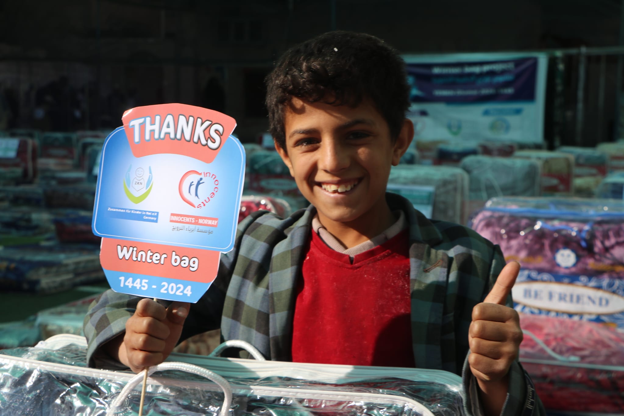 Im Januar 2024 wurde das Winterhilfsprojekt im Gouvernement Dhamar im Jemen verteilt. Die Wintertasche enthielt 2 Decken, 2 Matratzen und 3 Winterkleidung (Damen, Herren und Kinder). Das Projekt kam 137 armen, bedürftigen und Waisenfamilien zugute. Ebenfalls im Dezember 2024 wurde Winterkleidung an Waisen und bedürftige Kinder im Gouvernement Taiz im Jemen verteilt. Viele Kinder haben von dem Projekt profitiert.