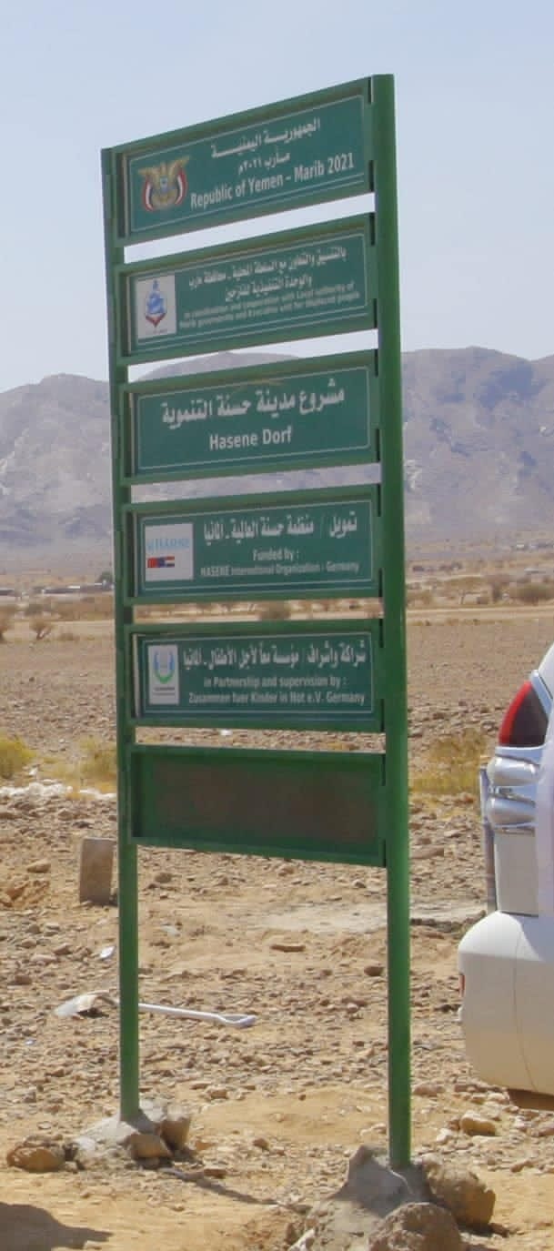 Zusammen für Kinder in Not e.V. setzt in Zusammenarbeit mit der Hasene International Organization den Aufbau des Hasene – City, ein Wohndorf -Projekts im Gouvernement Ma’rib im Jemen fort. Das Projekt umfasst 100 Wohneinheiten. Die Wohnungen sind jeweils ca. 50 m² groß. Die jeweils aus zwei Zimmern, einer Küche einem Bad und einem Flur bestehen. Darüber hinaus beinhaltet das Projekt eine Gebetsstätte, einen Kindergarten einen Kinderspielplatz, eine Schule, ein Gesundheitszentrum, eine gemeinnützige Bäckerei, eine Suppenküche und einen großen Wassertank.